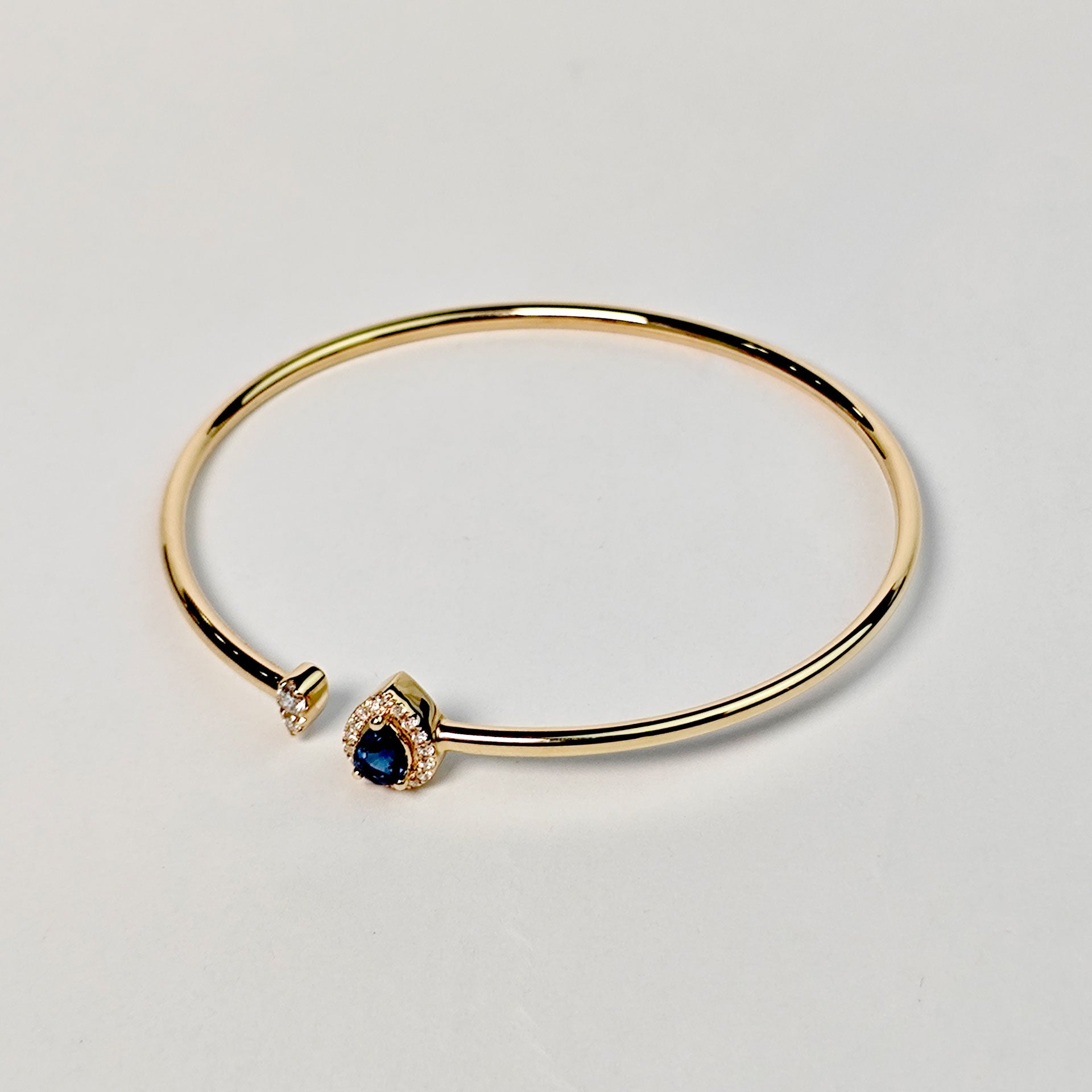 Clásico pero contemporáneo: el zafiro en corte gota aporta profundidad, mientras los diamantes y la montura en oro 14K elevan la pieza. Perfecta para estilo de oficina y eventos sociales.